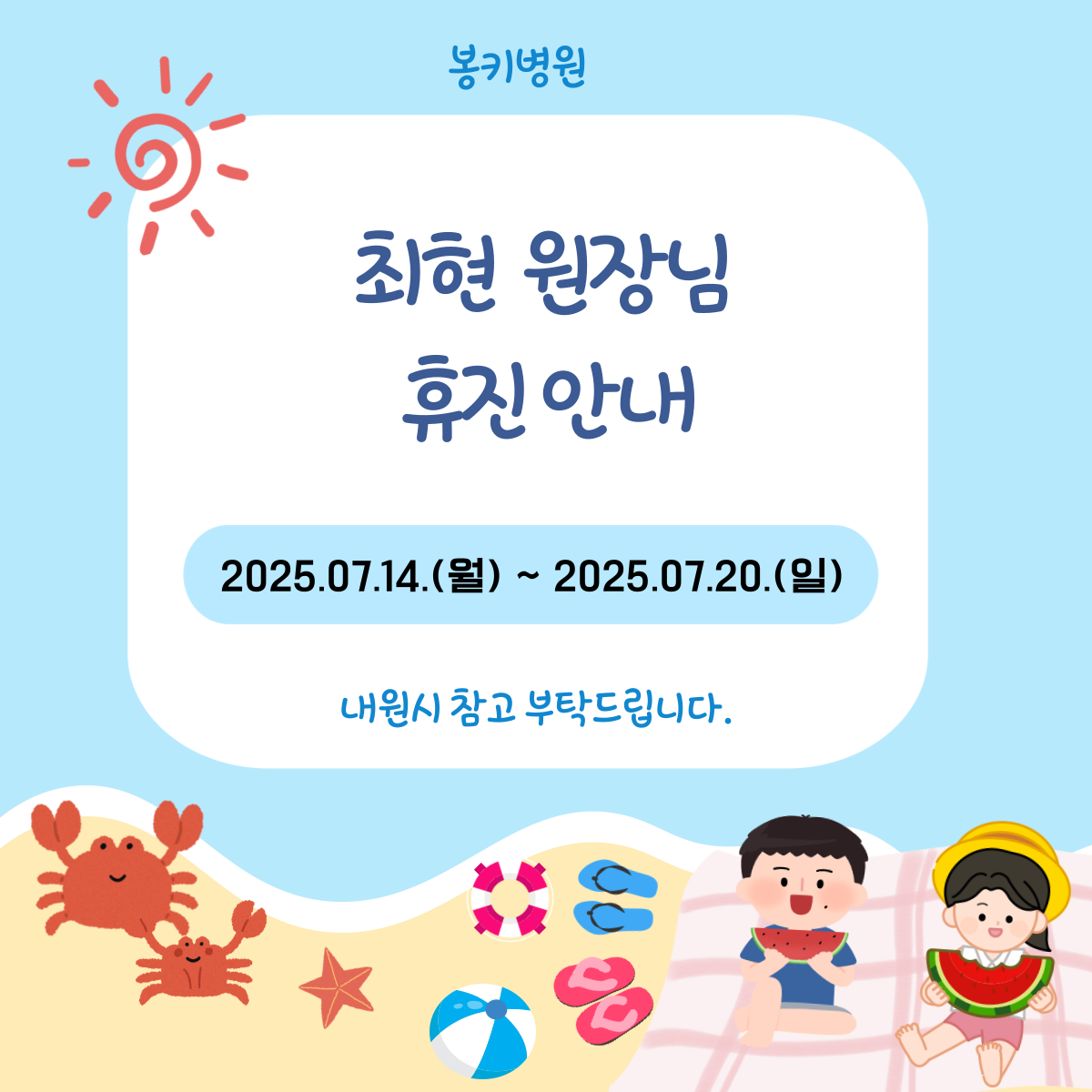 2025³â 7¿ù ¹ÚÇϽŠ¿øÀå´Ô ÈÞÁø ¾È³»